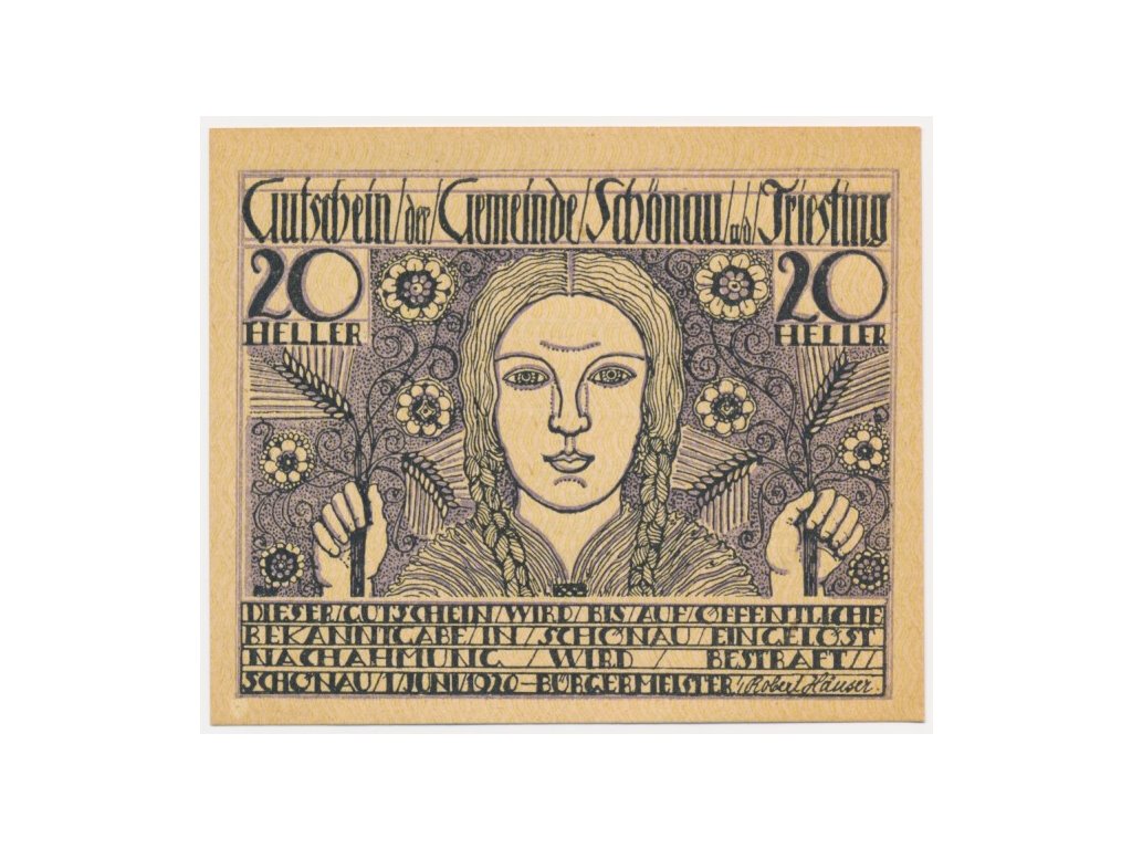 Rakousko, nouzová bankovka 20 h, Schönau an der Triesting, 1920, krásný stav UNC...viz autentické foto