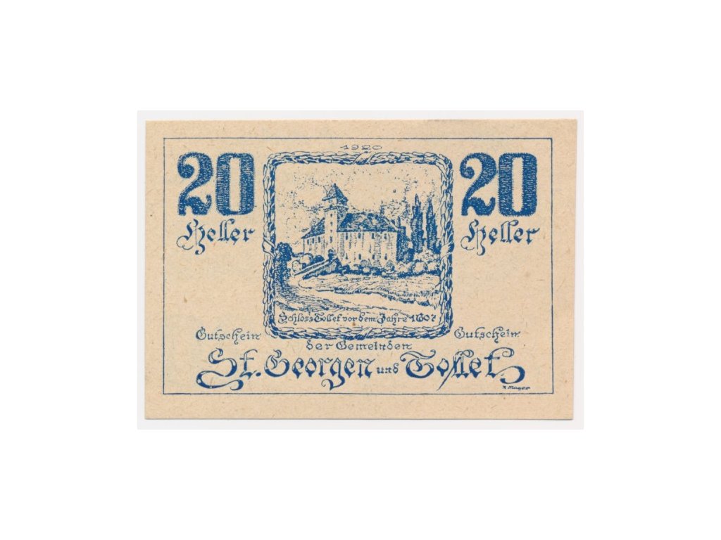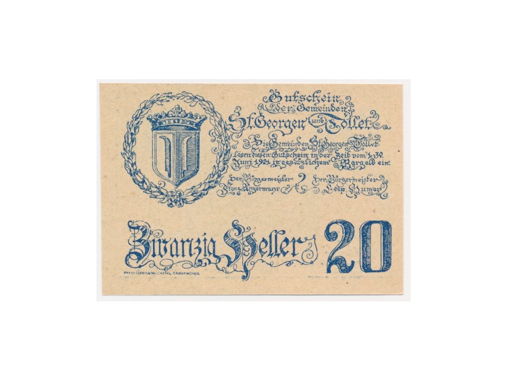 Rakousko, nouzová bankovka 20 h, St.Georgen, 1921, krásný stav UNC