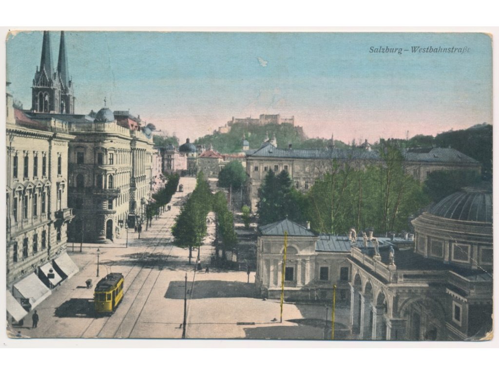 Rakousko, Salcburk, Westbahnhofstrasse, Nádražní ulice, tramvaj..., 1913