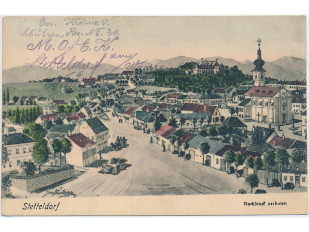 Rakousko, Stetteldorf am Wagram, koláž, pohled na město, cca 1917
