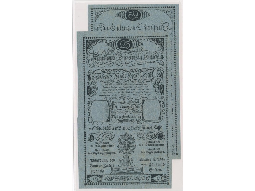 Rakousko - Uhersko, 25 Gulden, 1806, Formulář na modrém papíře Av + Rv, ojedinělý výskyt, krásný stav 1 ...viz autentické foto