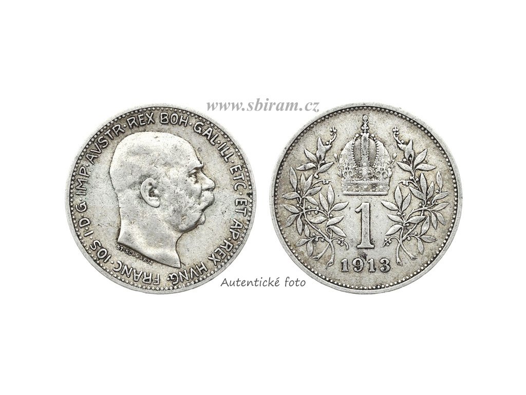 Rakousko - Uhersko, Ag (stříbrná) mince 1 Koruna, 1913...viz autentické foto