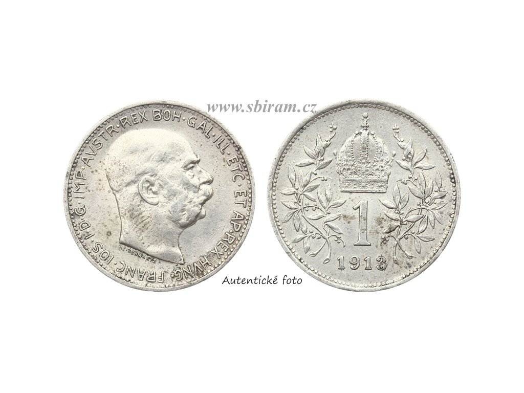 Rakousko - Uhersko, Ag (stříbrná) mince 1 Koruna, 1913...viz autentické foto