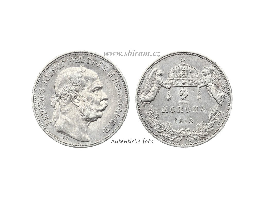 Rakousko - Uhersko, Ag (stříbrná) mince 2 Koruna, 1913 KB...viz autentické foto
