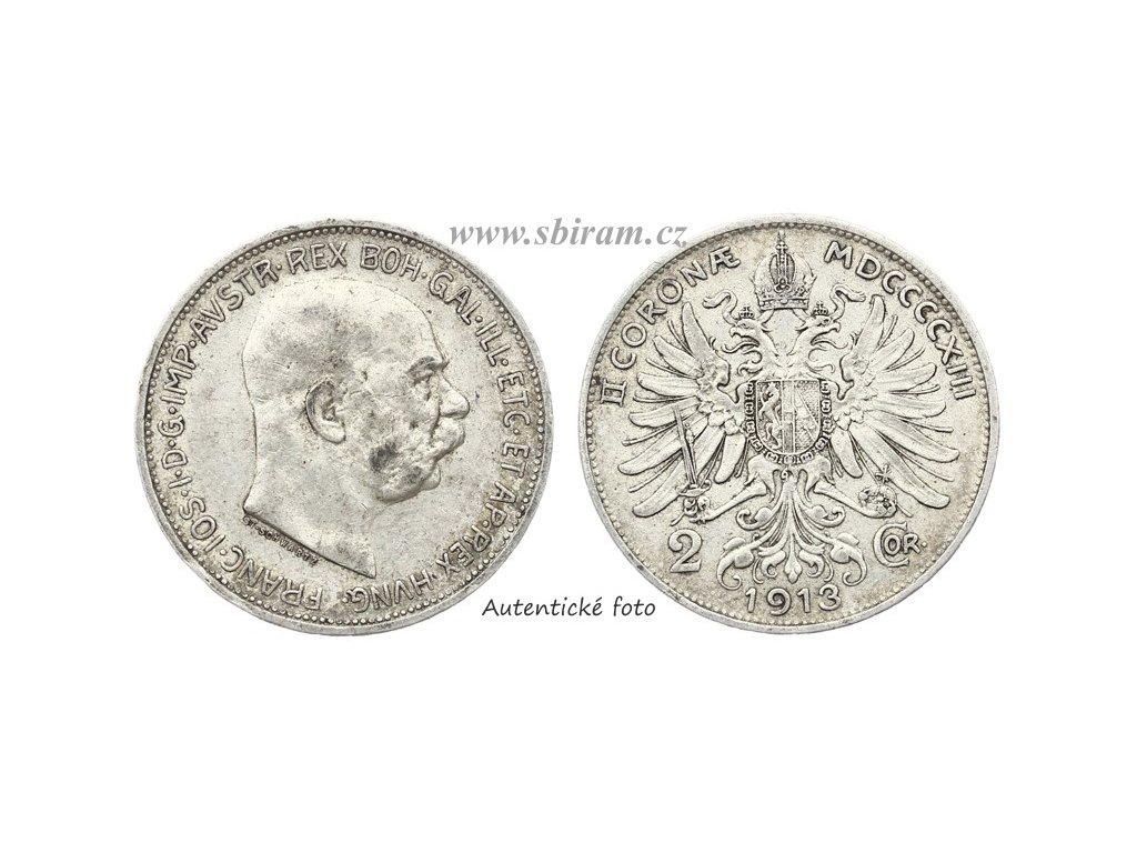 Rakousko - Uhersko, Ag (stříbrná) mince 2 Koruna, 1913...viz autentické foto