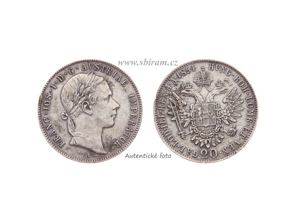Rakousko - Uhersko, Ag (stříbrná) mince 20 Krejcar, 1854 A, hranka jinak stav -0/0-