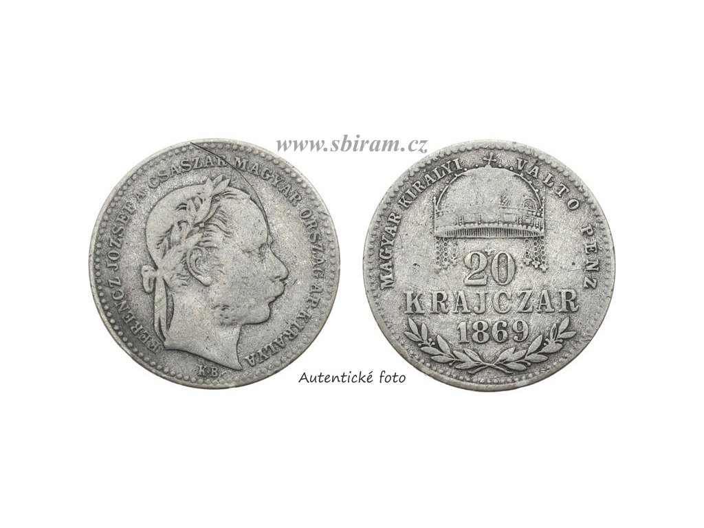 Rakousko - Uhersko, Ag (stříbrná) mince 20 Krejcar, 1869 KB...viz autentické foto