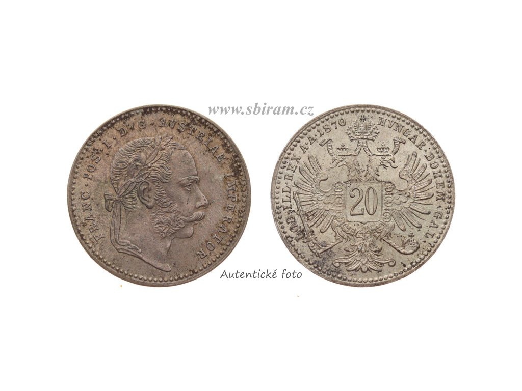 Rakousko - Uhersko, Ag (stříbrná) mince 20 Krejcar, 1870, patina, stav 1/1...viz autentické foto