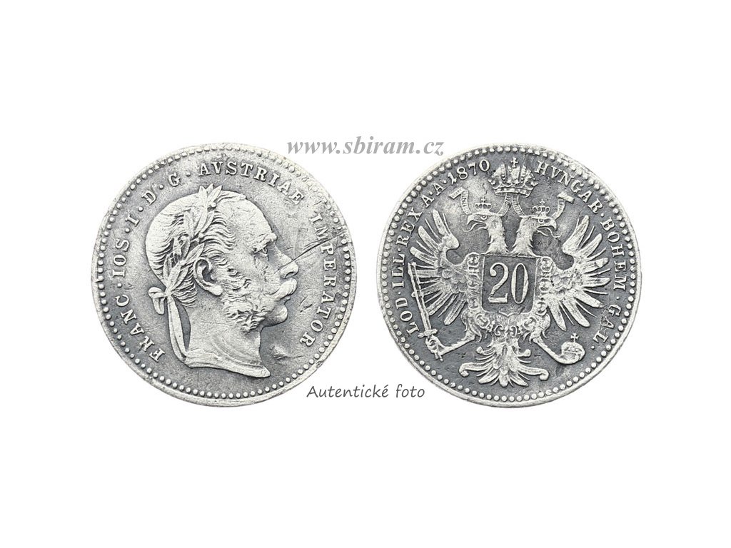 Rakousko - Uhersko, Ag (stříbrná) mince 20 Krejcarů, 1870...viz autentické foto