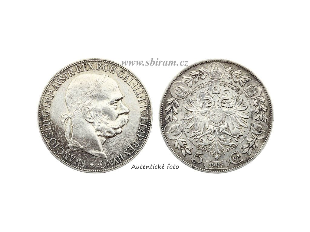 Rakousko - Uhersko, Ag (stříbrná) mince 5 Korun, 1907...viz autentické foto