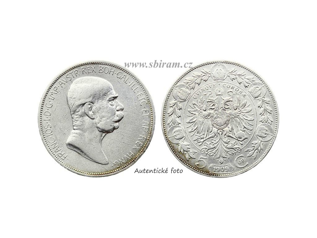 Rakousko - Uhersko, Ag (stříbrná) mince 5 Korun, 1909...viz autentické foto