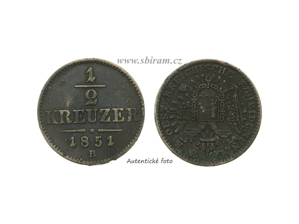 Rakousko - Uhersko, mince 1/2 Krejcar, 1851 B...viz autentické foto