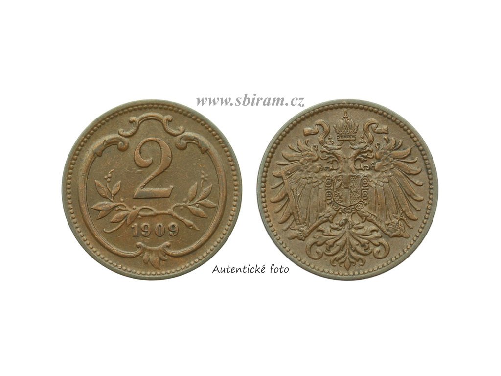 Rakousko - Uhersko, mince 2 Heller, 1909, stav -0/0-...viz autentické foto