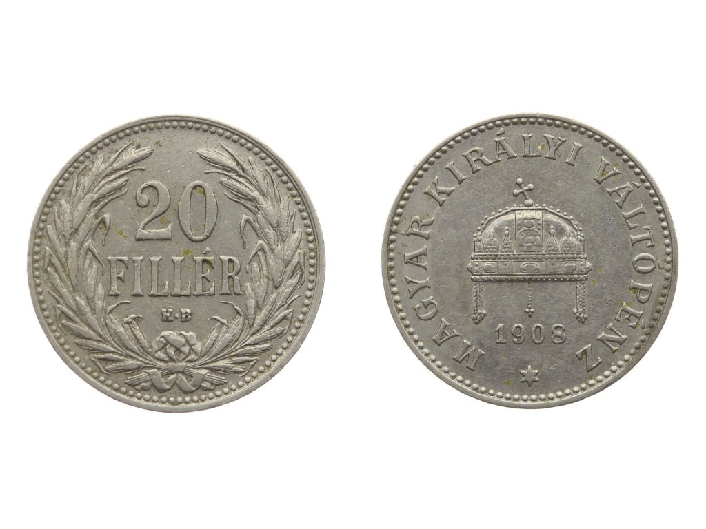 Rakousko - Uhersko, mince 20 Filler K. B. 1908, stav 1/1 - viz autentické foto