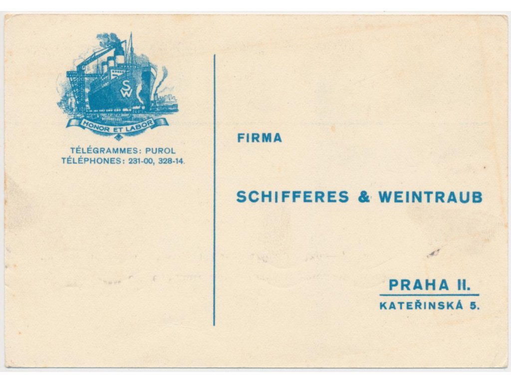 Reklamní karta firmy Schifferes a Weintraub, neprošlé poštou