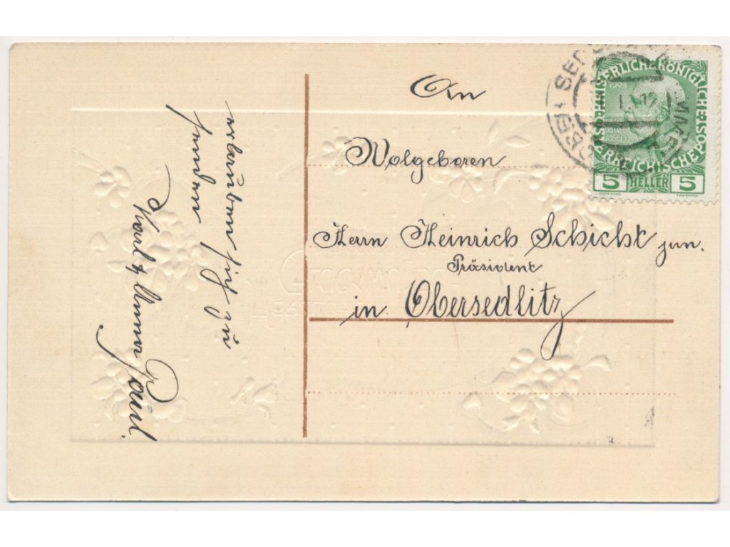 Reliéfní novoroční přání, koláž, Herzlichen Glückwinsch zum neuen Jahre, 1912