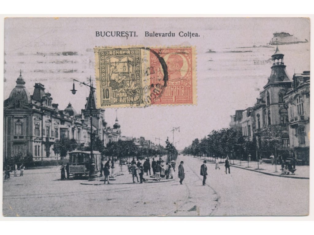 Rumunsko, Bukurešť, Bulevardu Coltea, oživená ulice, tramvaj, cca 1920