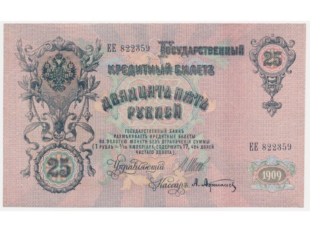 Rusko, 25 Rubl, 1909, stav 2..viz autentické foto