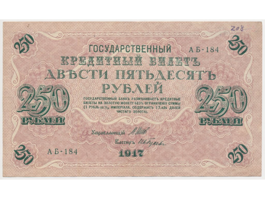 Rusko, 250 Rublů, 1917, stav 1-...viz autentické foto