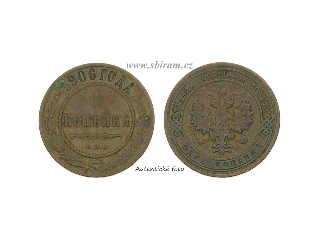 Rusko, mince 1 Kopějka, 1906 S.P.B...viz autentické foto