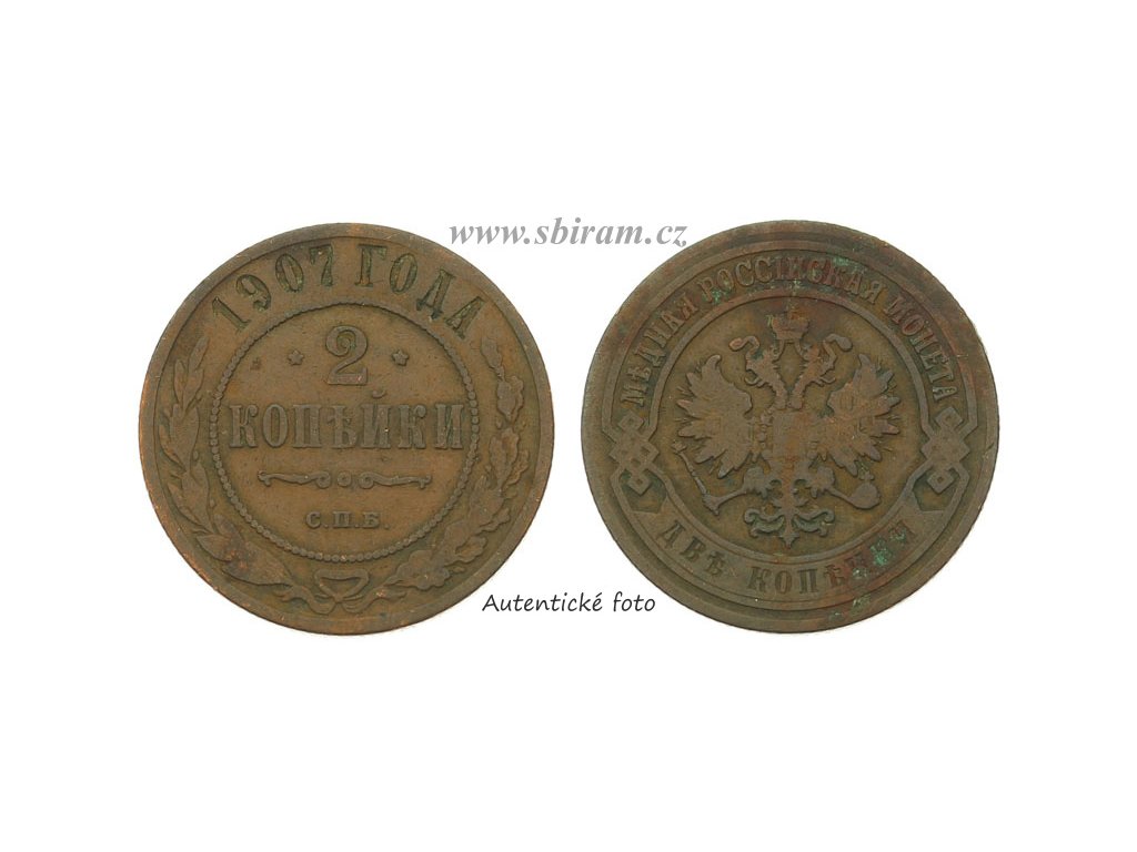 Rusko, mince 2 Kopějky, 1907 S.P.B...viz autentické foto