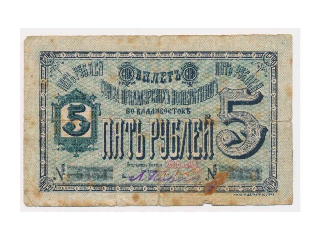 Rusko, Vladivostok, 5 Rubl, 1919, slušný oběhový stav...viz autentické foto