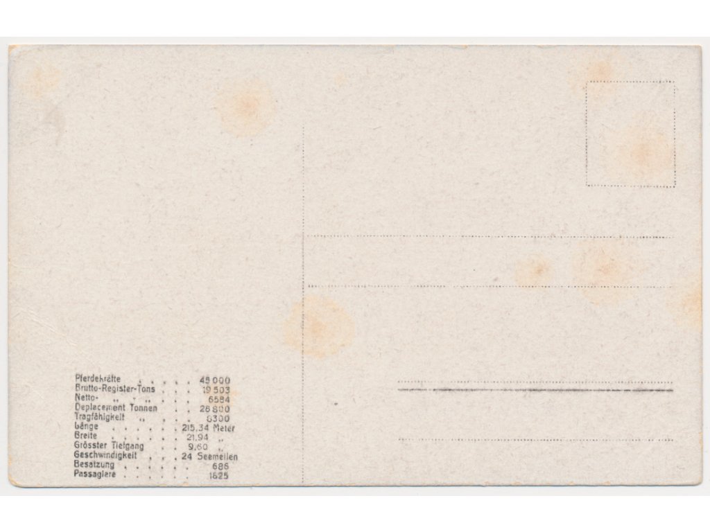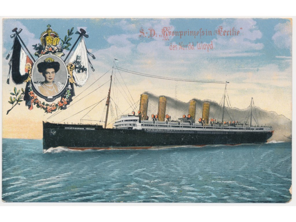 S. D. Kron Princessin Cecilie, celkový pohled, na rubové straně technické parametry, cca 1904