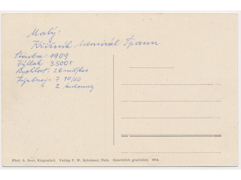 S. M. S. Spaun, pohled na křižník R-U námořnictva, 1914