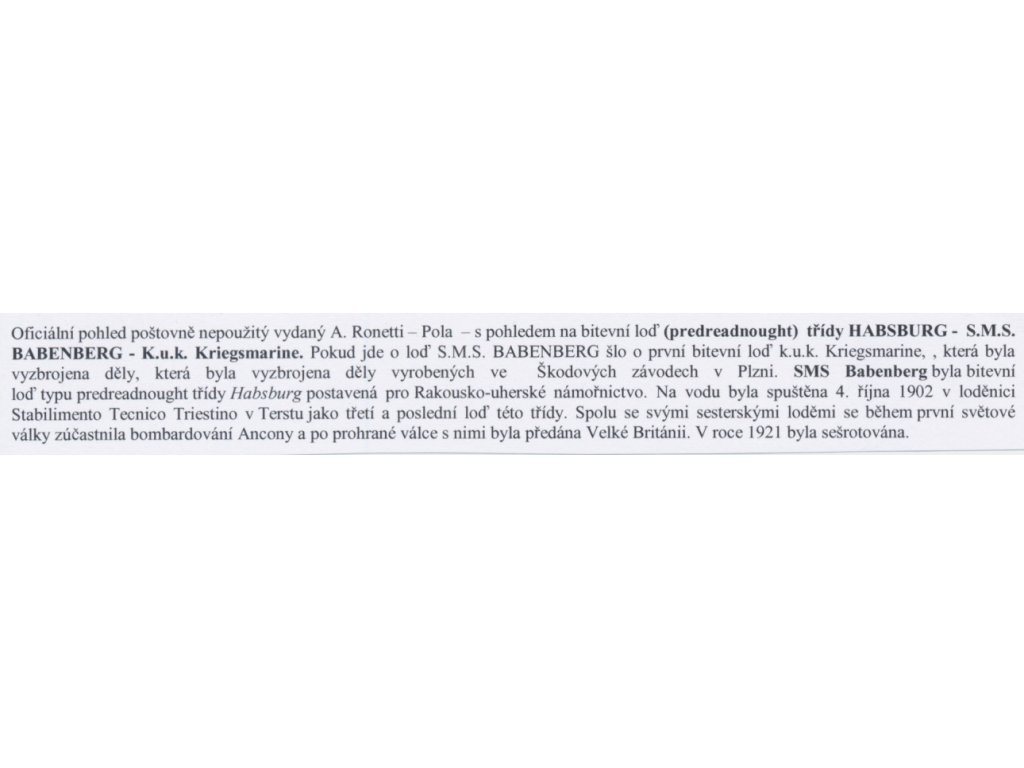 S. M. Schiff "Bebenberg", pohled na bitevní loď, cca 1909