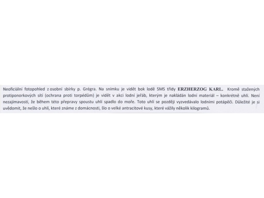 S.M.S. Erzherzog Karl, pohled na bok lodi s jeřábem při nakládání uhlí, cca 1915