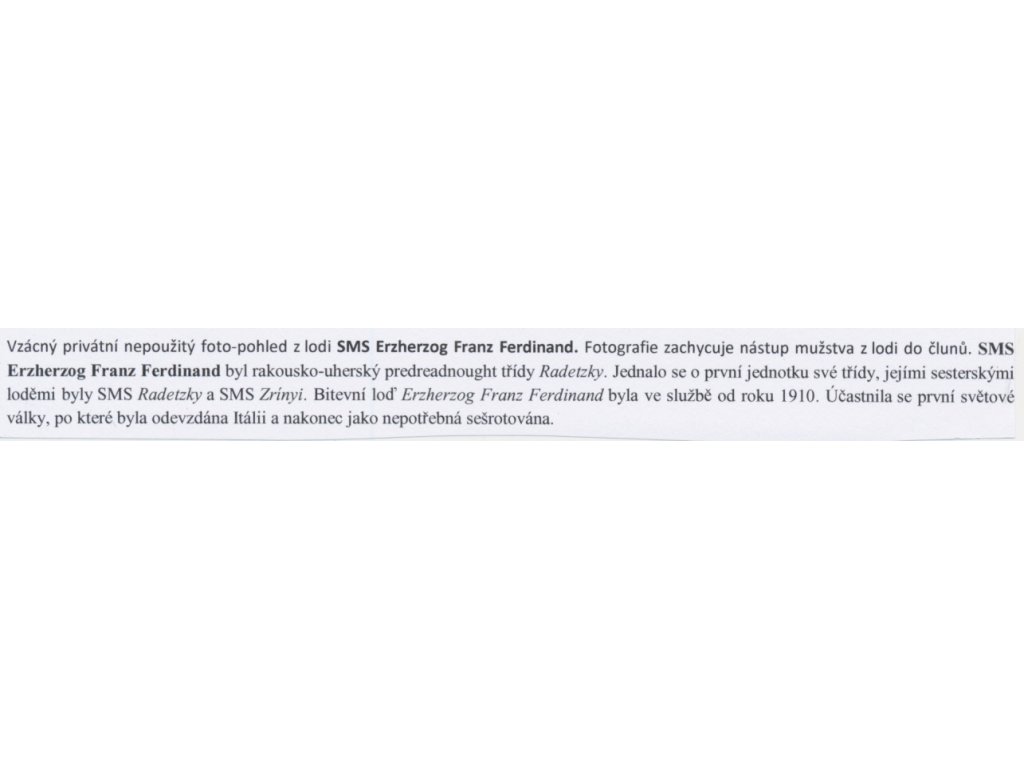 S.M.S Erzherzog Franz Ferdinand, nástup mužstva z lodi do člunů, cca 1911