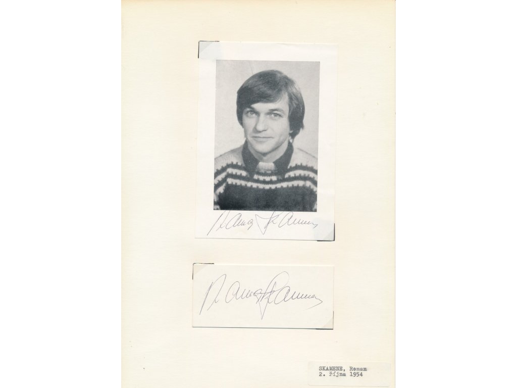 Skamene Roman (1954), český herec, sběratelský list o velikosti A4 s propagační portrétovou fotografií a vlastnoručním podpisem a s vlastnoručním podpisem na sběratelské kartičce...viz autentické foto