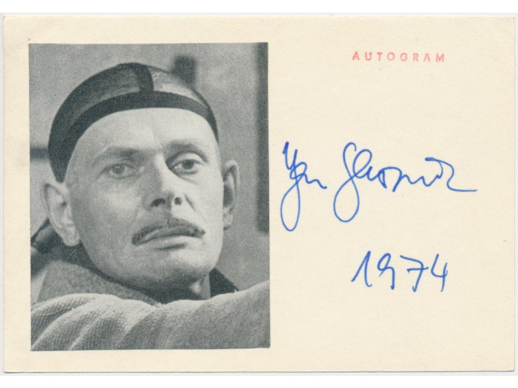 Skopeček Jan, herec, sběratelská karta s vlastnoručním podpisem, datováno 1974