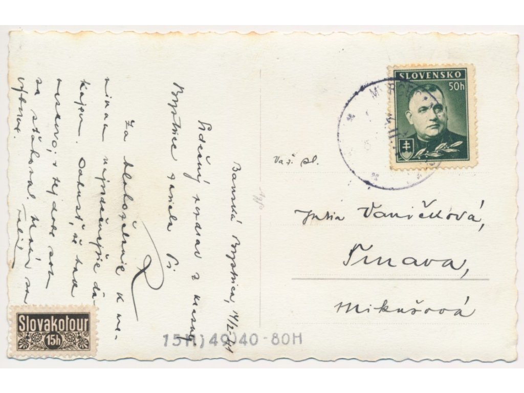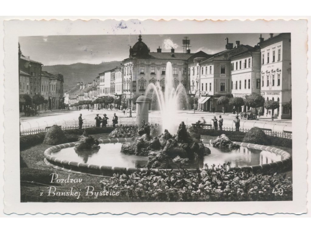 Slovensko, Banská Bystrica, Náměstí, oživená partie u fontány, 1941
