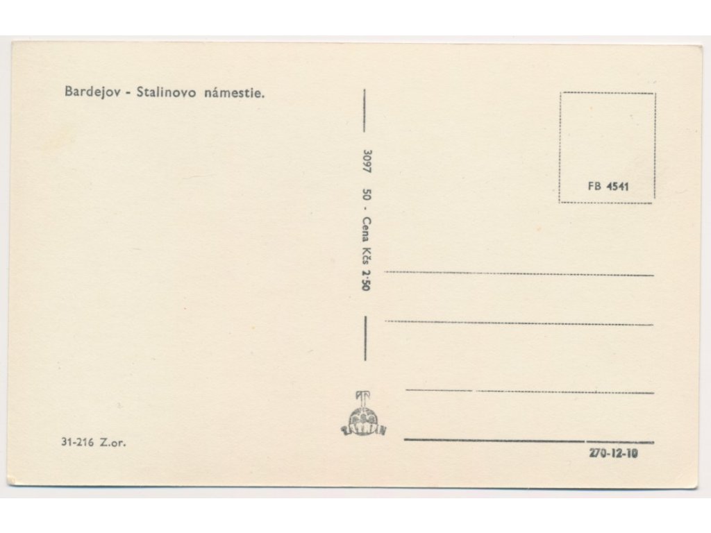 Slovensko, Bardejov, partie z náměstí, cca 1949