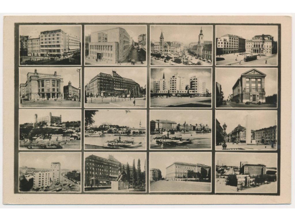 Slovensko, Bratislava, 16 - ti okénková koláž dominant města, cca 1947