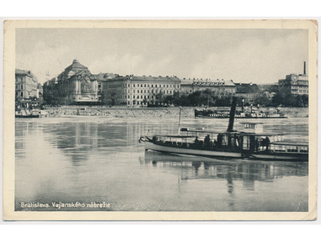 Slovensko, Bratislava, Vajanského nábrežie, parník na řece, cca 1937