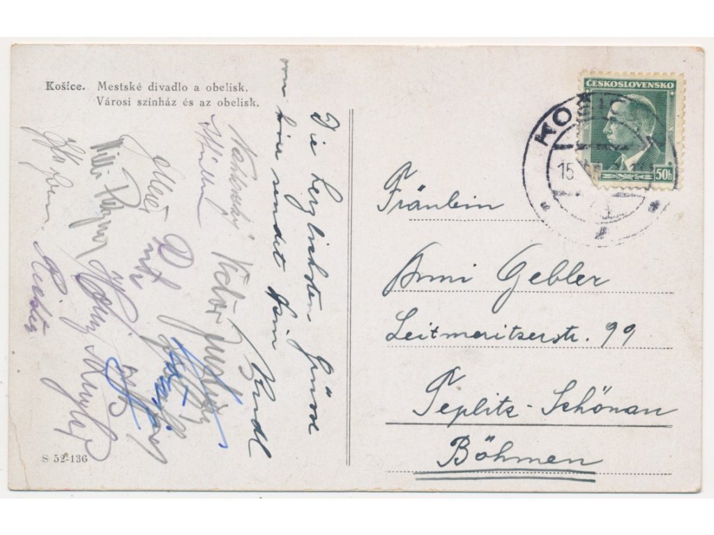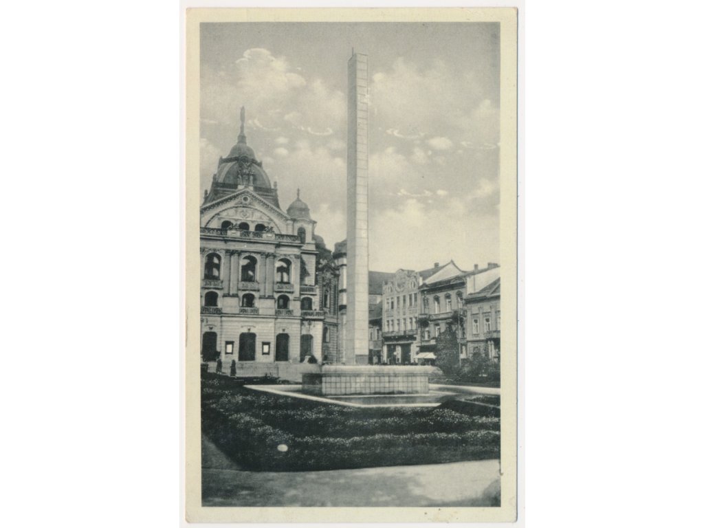 Slovensko, Košice, Mestské divadlo a obelisk, cca 1937