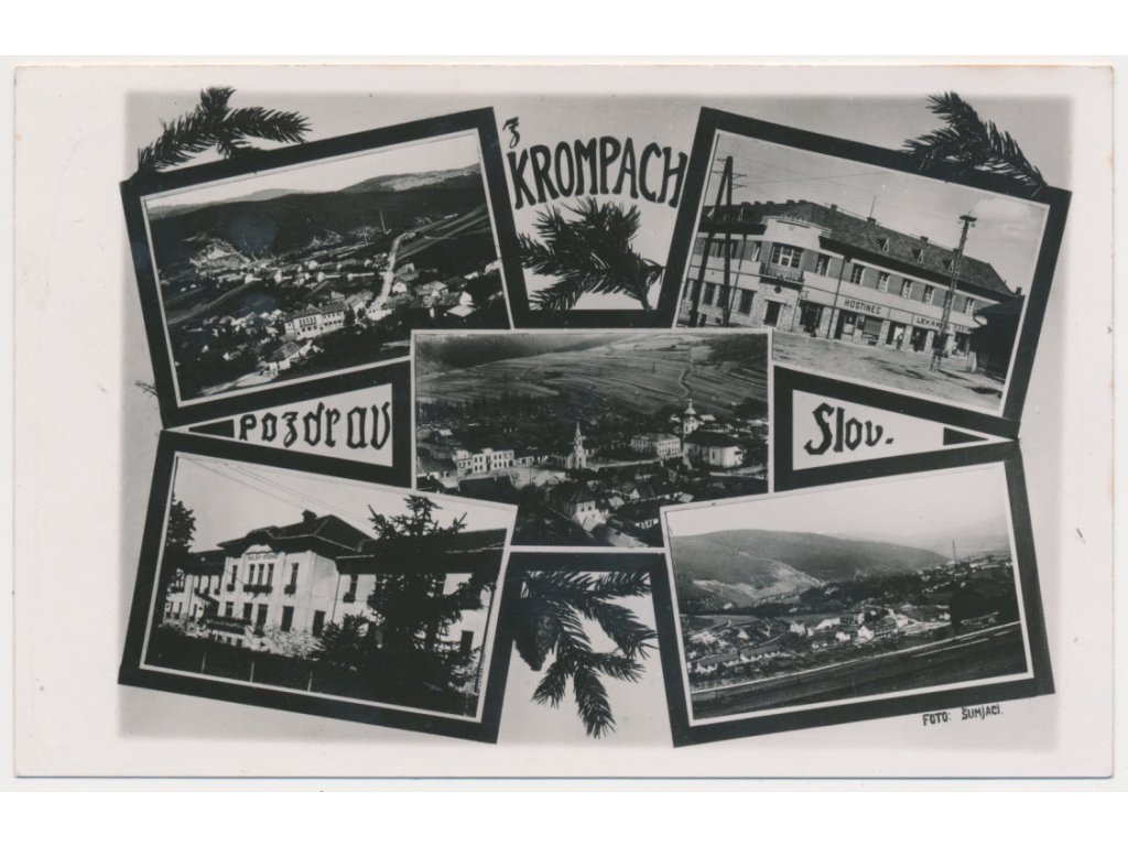 Slovensko, Krompachy, 5 záběrová koláž dominant města, cca 1942