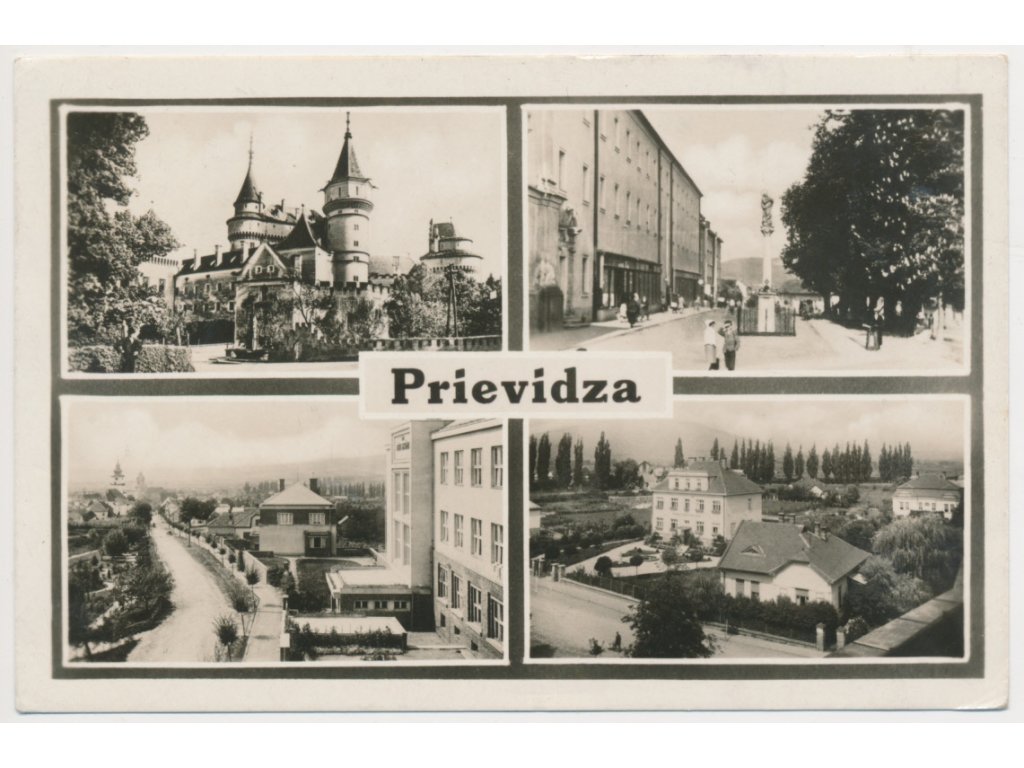 Slovensko, Prievidza, 4 okénkový záběr dominant města, cca 1950