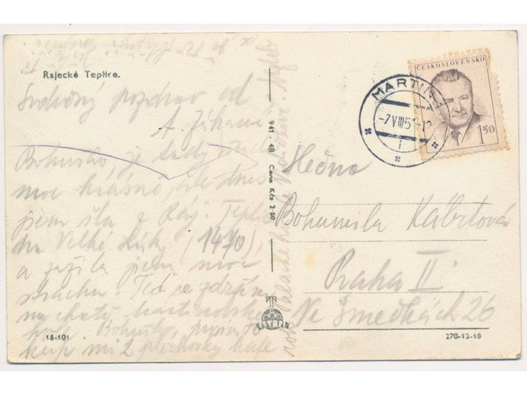 Slovensko, Rajecké Teplice, celkový pohled na město, cca 1951