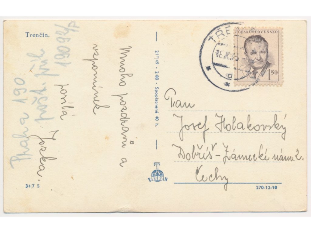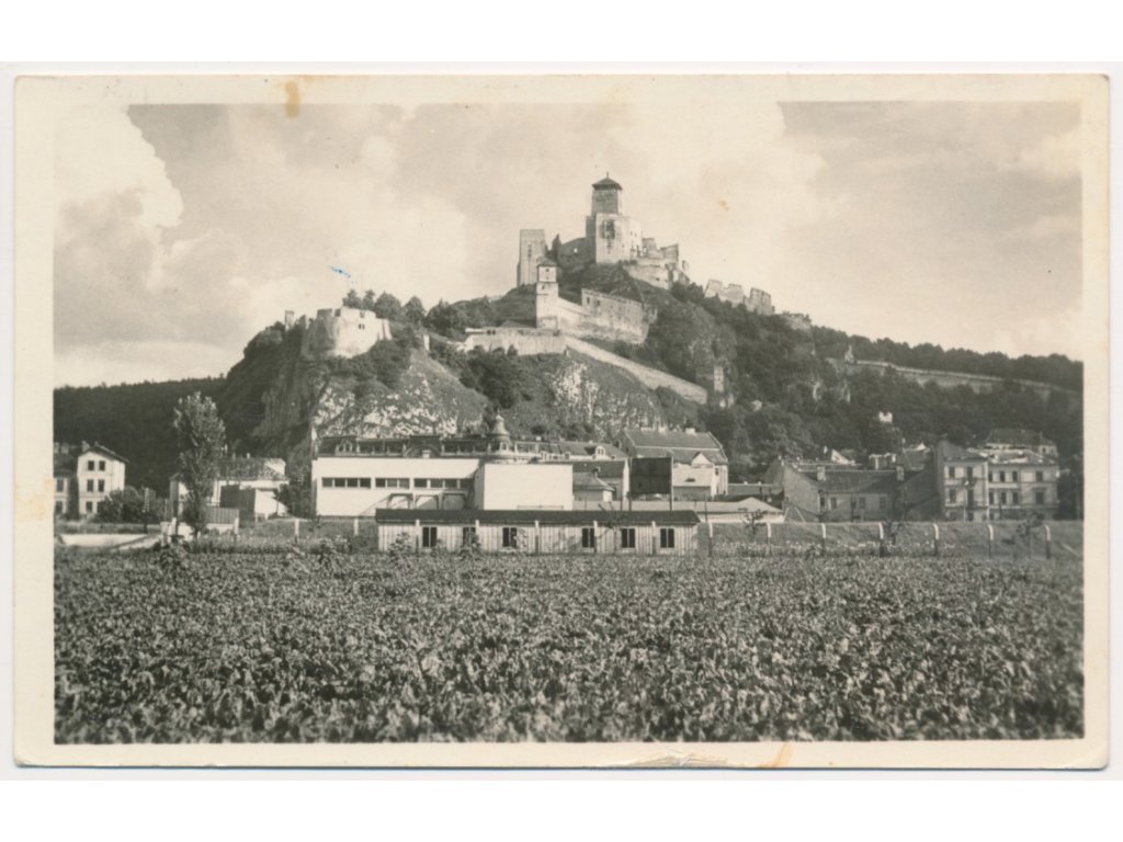 Slovensko, Trenčín, pohled na hrad a podhradí, cca 1950
