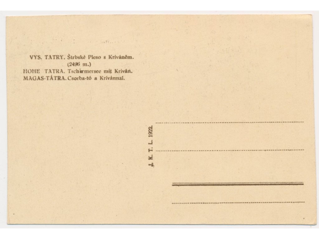 Slovensko, Vysoké Tatry, Kriváň a Štrbské Pleso, cca 1922