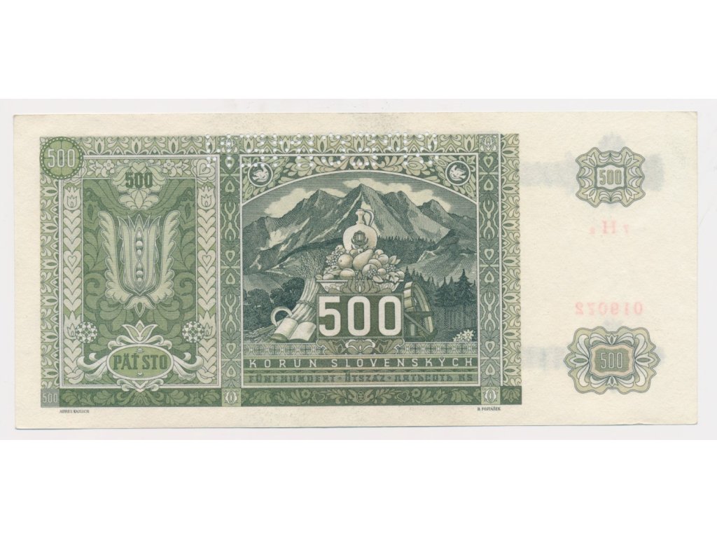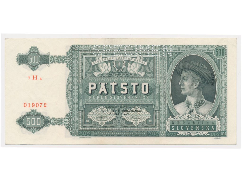 Slovenský štát, 500 Ks, 1941, série 7 H a, perforovaná, luxusní sběratelská jakost UNC