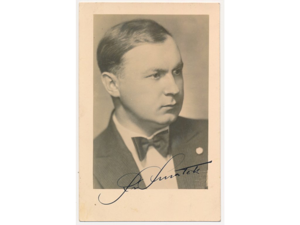 Smatek František (1899-1978), český malíř, ilustrátor, karikaturista, portrétová pohlednice o rozměrech cca 9x14cm s vlastnoručním podpisem...viz autentické foto