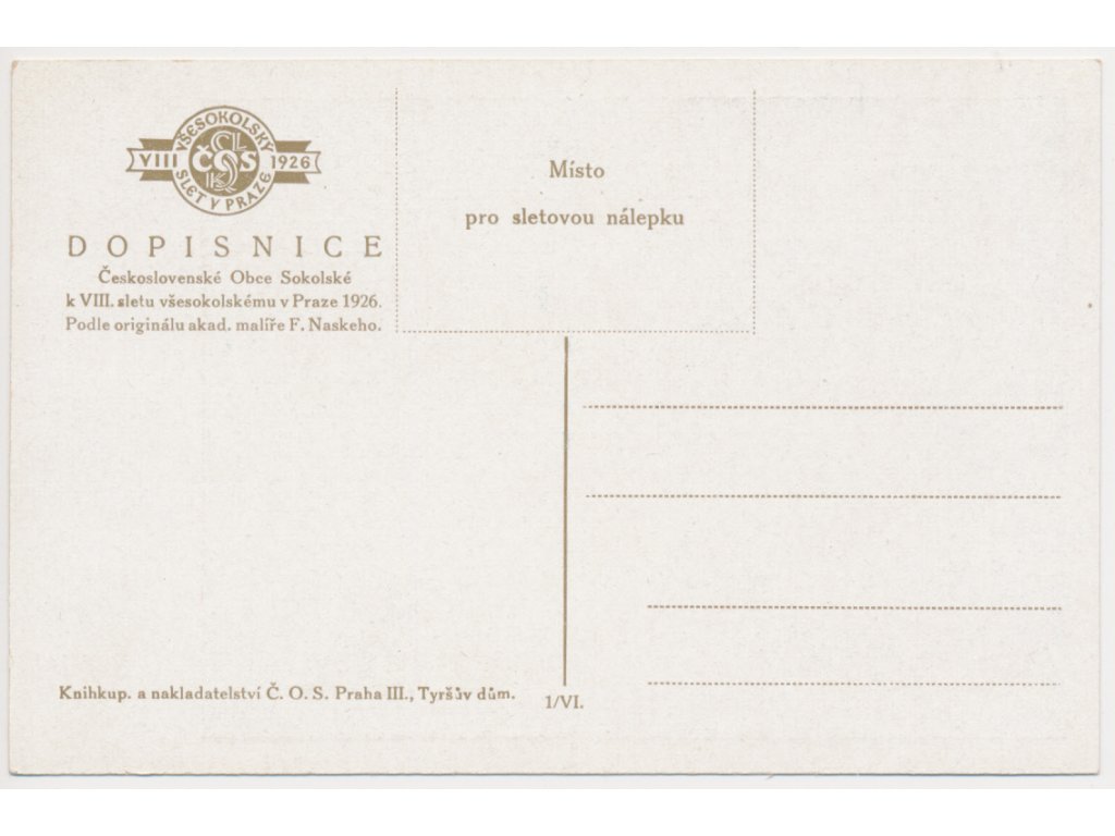Sokol, VIII. slet všesokolský v Praze 1926, dle orig. ak. malíře F. Naskeho