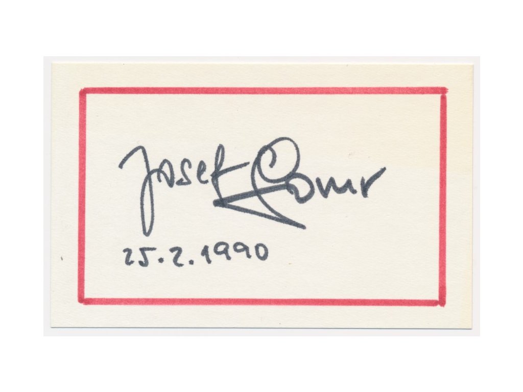 Somr Josef (1934-2022), český herec, sběratelská kartička, vlastnoruční podpis, datováno 1990 - viz autentické foto