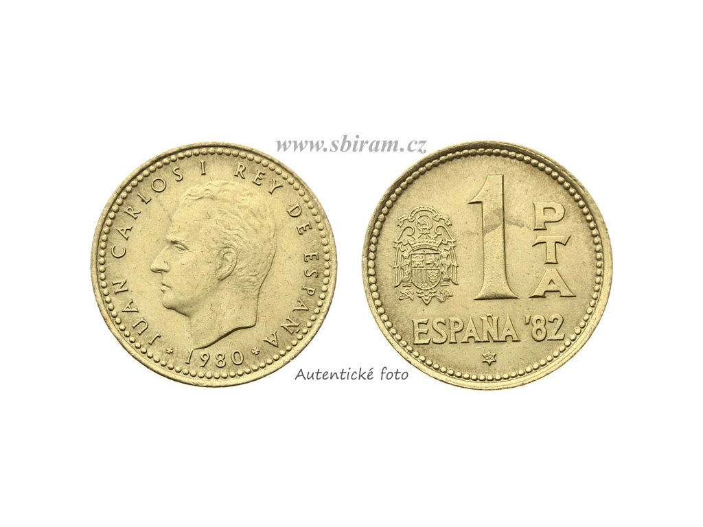 Španělsko, mince 1 Peseta, 1980, stav 1/1...viz autentické foto