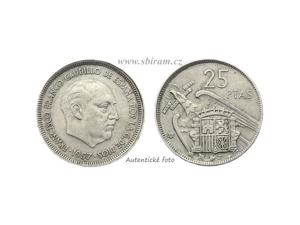 Španělsko, mince 25 Pesetas, 1957, stav 1/1...viz autentické foto