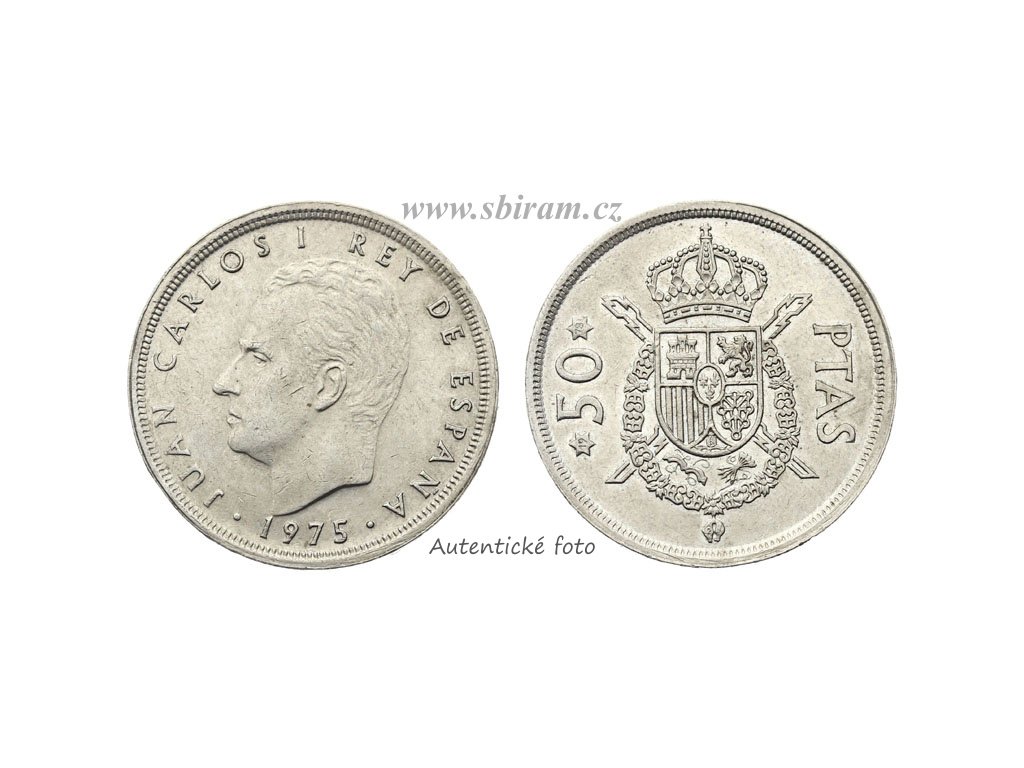 Španělsko, mince 50 Pesetas, 1975, stav 1/1...viz autentické foto